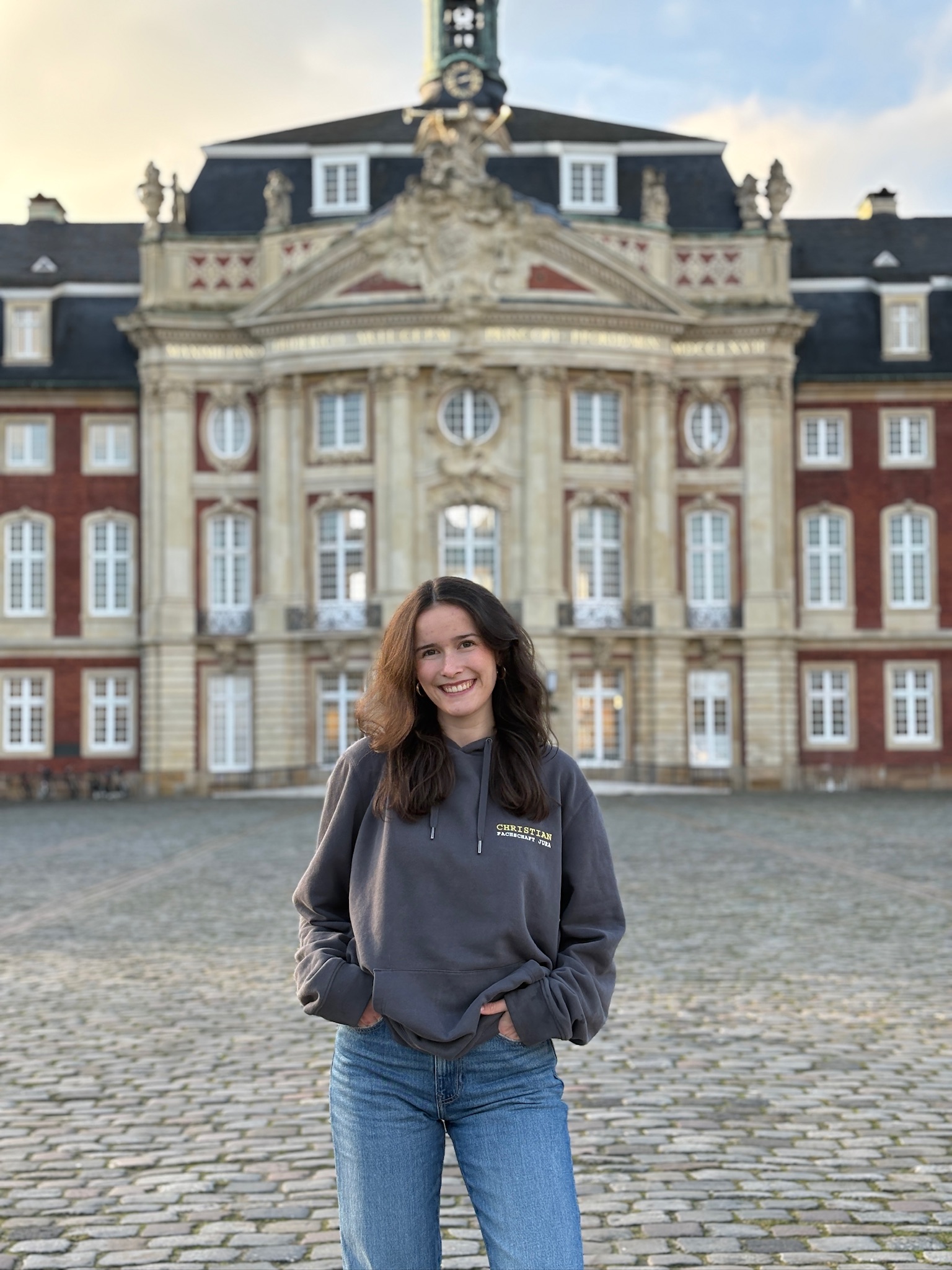 ich bin Vanessa, 22 Jahre alt und komme ursprünglich aus der Nähe von Oldenburg. Seit dem Wintersemester 2023/24 studiere ich in Münster und befinde mich derzeit im 4. Fachsemester. Im Fachschaftsrat bin ich eure Rätin für Öffentlichkeitsarbeit. Heißt konkret: Ich kümmere mich um alles, was unsere Fachschaft nach außen hin repräsentiert. Von Instagram-Posts über Veranstaltungsdesign bis hin zu unseren Publikationen, wie der Ersti- oder Schwerpunktbroschüre.